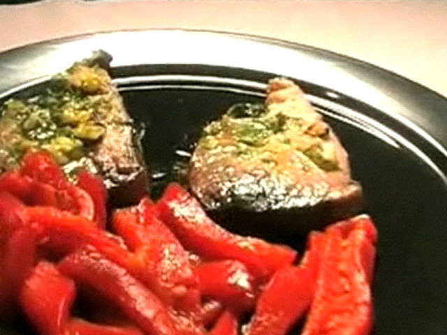 Оригинальный рецепт приготовления рыбы.Состав:тунец — 1 кусок;перец — 1 штука;чеснок — 3 зубчика;мука, соль, масло, шафран, петрушка.