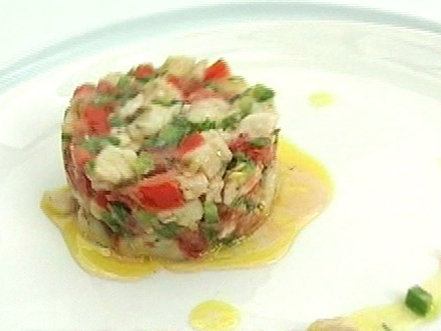 Рецепт перуанской кухни из белой рыбы.Состав:филе белой рыбы — 1 штука;сок одного лимона;лук — 1 стебель;перец — 1 штука;помидор — 1 штука;кориандр, оливковое масло, соль, перец.