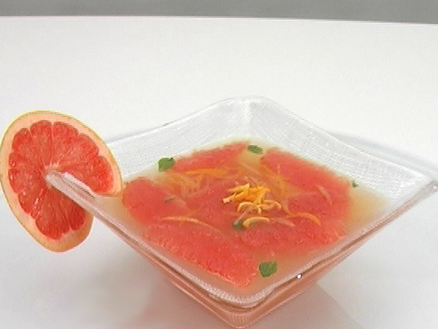 Летнее настроение в летнем супе.Состав:грейпфрут — 1 штука;сок одного апельсина;сахар — 80 гр;сок 1/2 лимона;вода — 1 стакан;цедра одного лимона;цедра одного апельсина.