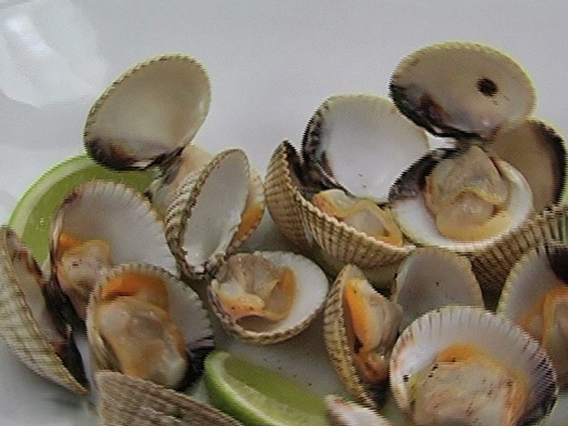 Изысканное блюдо для ценителей морепродуктов.Состав:моллюски — 35 штук;лайм — 1 штука;белое вино — 2 столовых ложки;черный перец по вкусу.