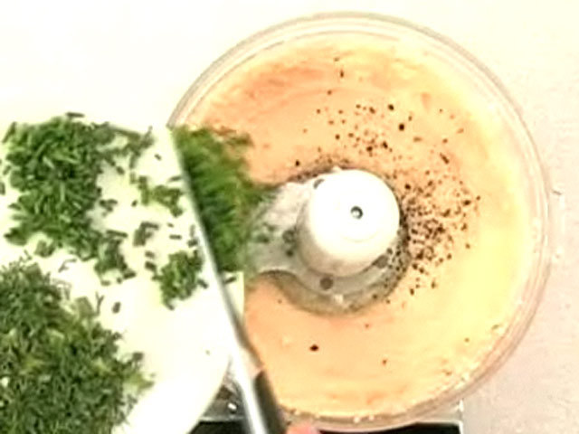 Рецепт вкусного соуса из лосося.Состав: лосось — 2 кусочка;чеснок, укроп, лимонный сок, перец, сливки, сливочный сыр, соль.