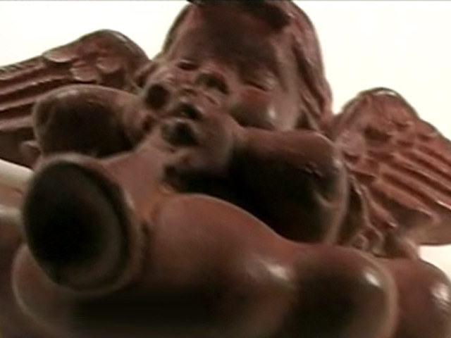 Нам потребуется:горячий клей, тальк, красная окись железа, белила, охра, воск, гипсовый образец, кисти.